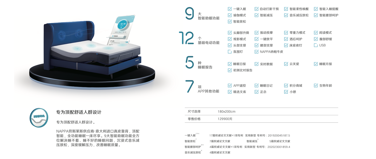 功效:一键入眠+智能放松+智能减压+智能腰部呵护+音乐减压放松